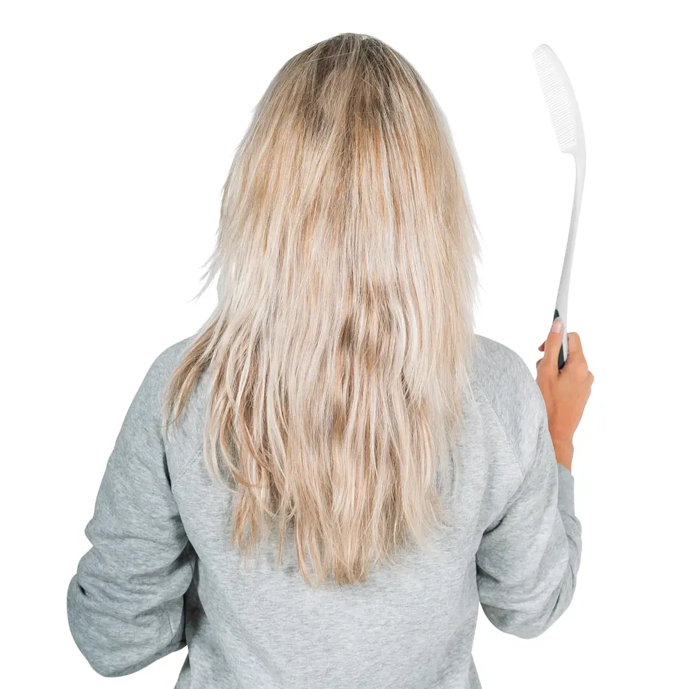 Deze ergonomisch ontworpen kam met verlengd handvat is het ideale hulpmiddel voor mensen die moeite hebben met het bereiken van de achterkant en bovenkant van hun hoofd. Het lange handvat zorgt ervoor dat je eenvoudig toegang hebt tot deze moeilijk bereikbare gebieden, zonder dat je je hand, arm of schouder onnodig belast. De kam is speciaal ontwikkeld om het kammen comfortabeler te maken, zelfs voor mensen met beperkte mobiliteit.