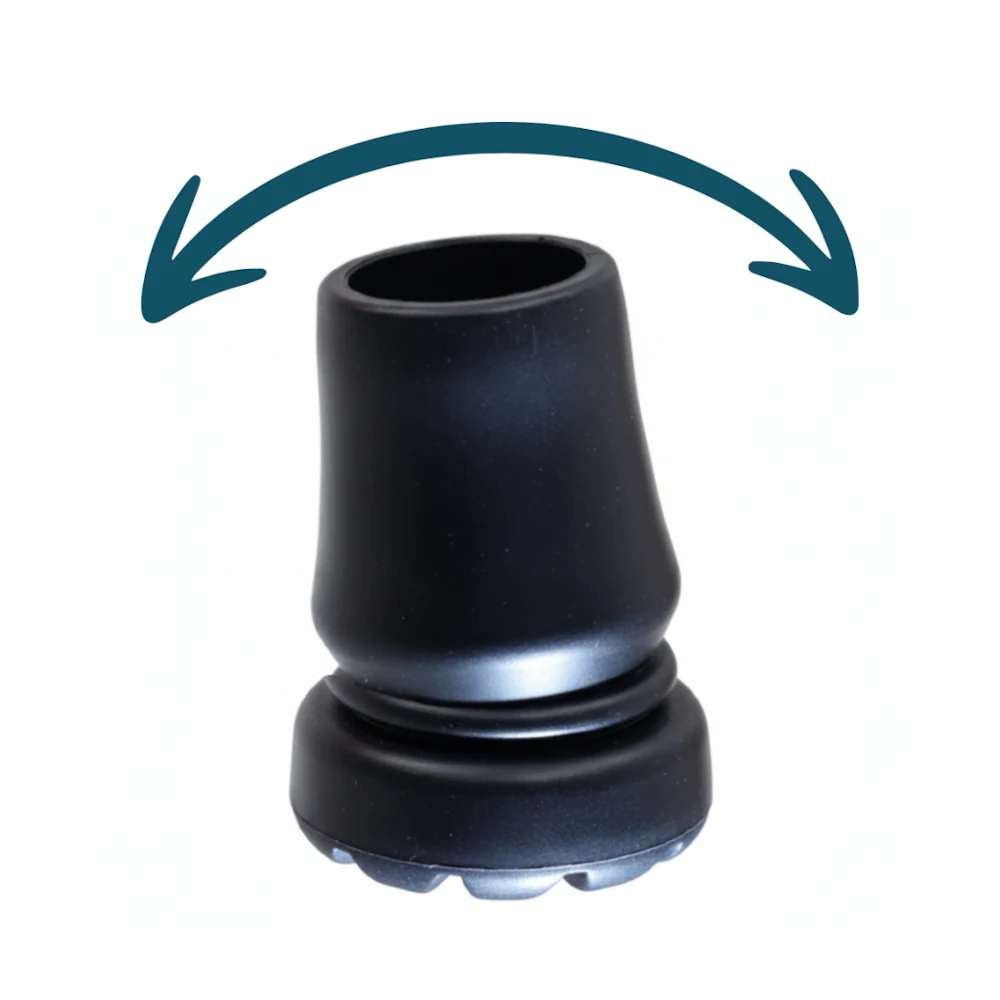 Deze flexibele stok- en krukdoppen vormen een ideale vervanging voor standaard doppen. Door het meebuigende ontwerp blijft de wandelstok of elleboogkruk beter in contact met de ondergrond, wat zorgt voor meer stabiliteit en veiligheid – ook op ongelijke paden. Het bovenste deel beweegt licht mee met de buis, waardoor elke stap natuurlijker en comfortabeler aanvoelt.