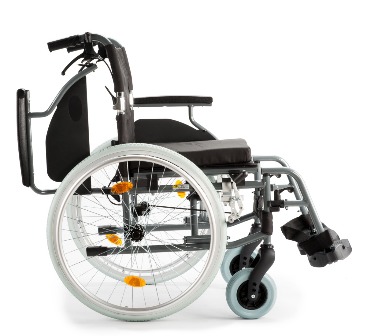 De rolstoel is uitgerust met lekvrije PU-banden, zodat je je geen zorgen hoeft te maken over lekke band.