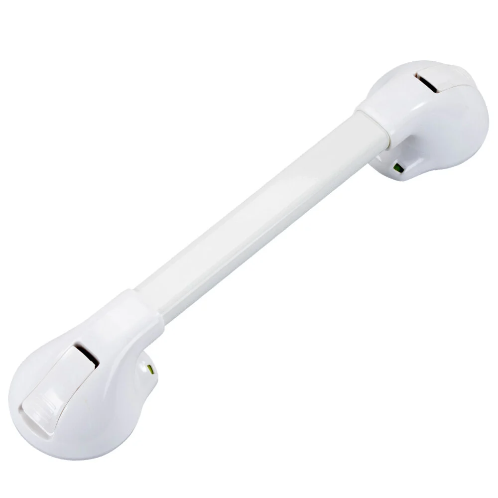 De bevestiging is eenvoudig en snel: de wandbeugel wordt met twee krachtige zuignappen geplaatst op een gladde, niet-poreuze en stevige ondergrond, zoals tegels of glas. Door de vacuümhendels naar beneden te drukken ontstaat een sterke vacuümwerking, waardoor de beugel stevig vastzit. Binnen enkele seconden is de wandbeugel gereed voor gebruik en net zo makkelijk weer te verwijderen of te verplaatsen.