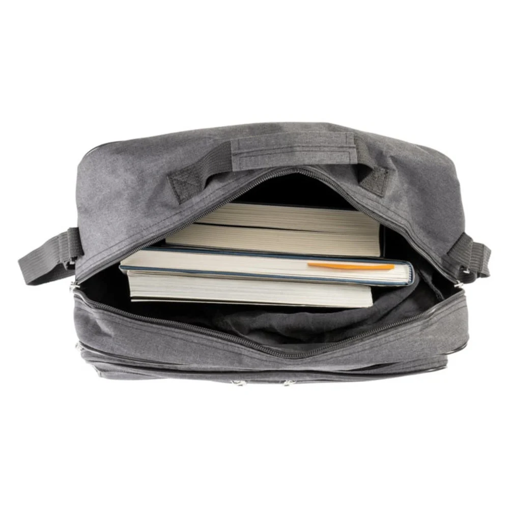 De tas is eenvoudig te bevestigen aan de duwhandvatten van de rolstoel met behulp van twee verstelbare lussen. De indeling bestaat uit één ruim hoofdvak over de volledige hoogte van de tas, één middelgroot vak en twee kleinere opbergvakken voor accessoires. Aan de bovenkant is de tas voorzien van een stevig handvat, zodat je hem ook gemakkelijk kunt meenemen wanneer dat nodig is.