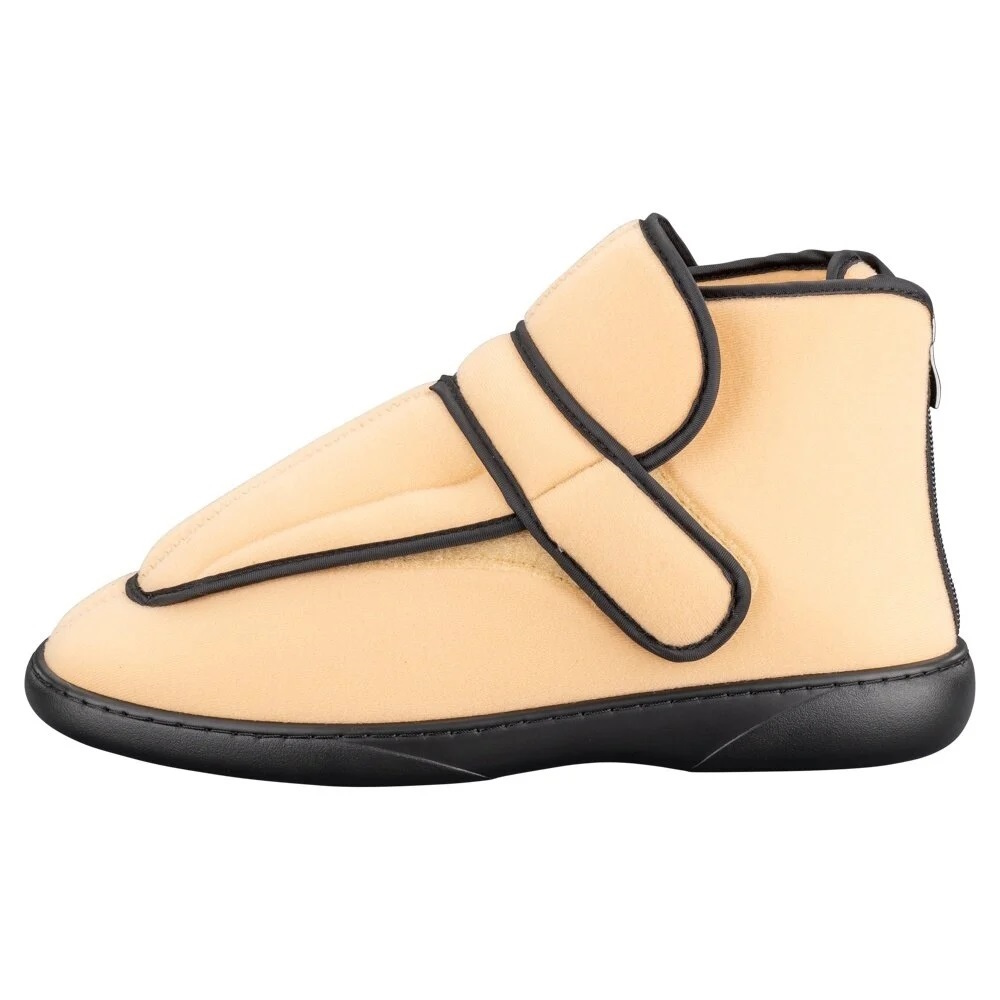 De schoenen kunnen volledig geopend worden dankzij de klittenband en ritssluiting, wat bijzonder handig is bij gezwollen voeten of veel verband.