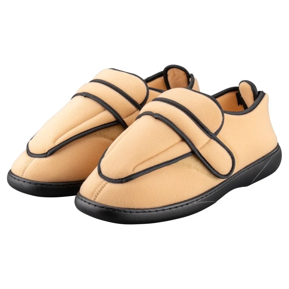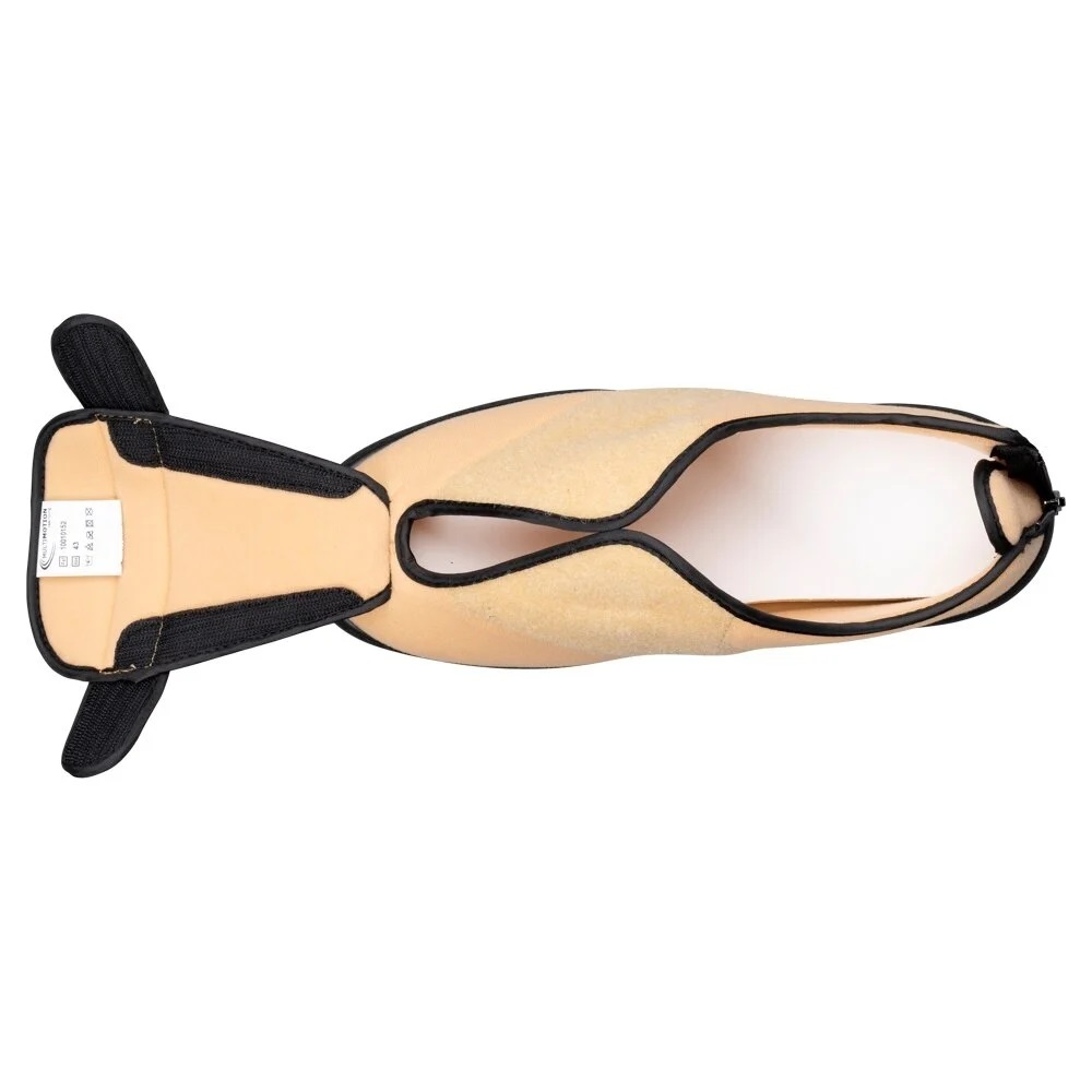 De schoenen kunnen volledig geopend worden dankzij de klittenband en ritssluiting, wat bijzonder handig is bij gezwollen voeten of veel verband.